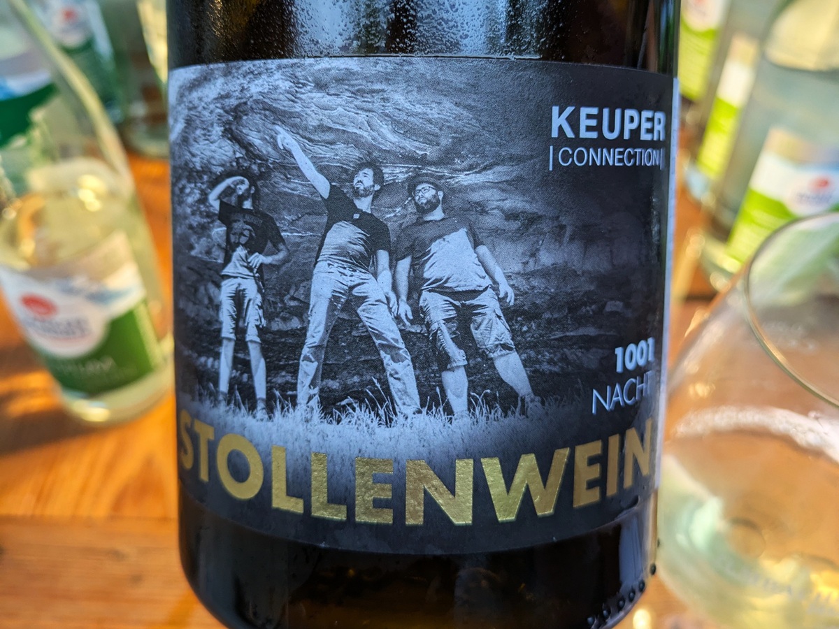 Eines der weinmäßigen Highlights des ersten Abends war ganz sicher der Stollenwein der Keuper-Connection Fröhlich-Martin-Hillabrand. Ich weiß nicht, ob das Projekt noch aktiv ist, aber aus den Jahrgängen 2018 und 2019 wurden hier denkwürdig haltbare Silvaner gekeltert. Das wäre definitiv ein Siegerwein-Kandidat für das »Best of Franken«. Man kann ihn aber auch einfach mal genießen ohne Wettbewerbsgedanken.